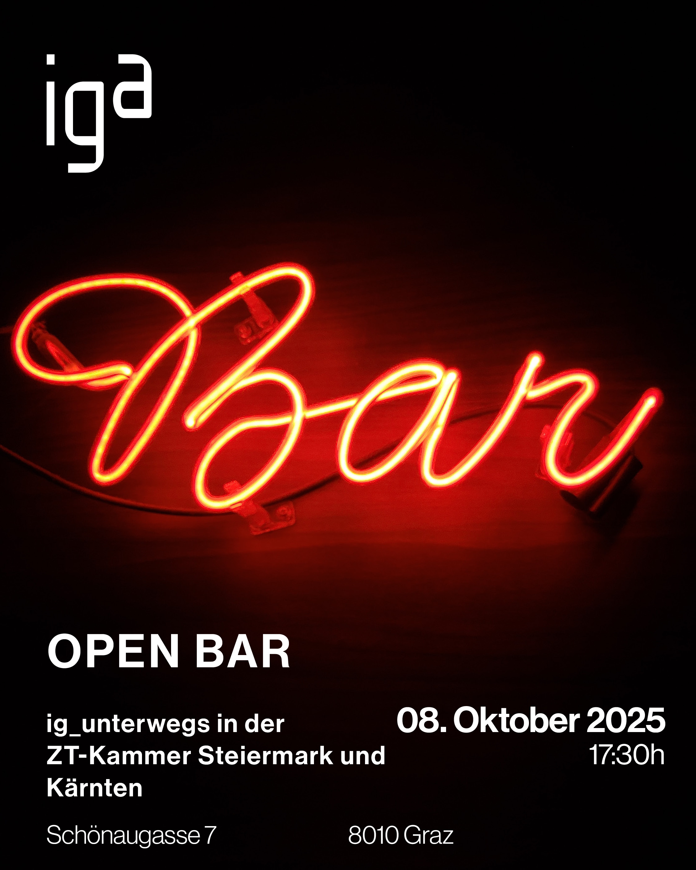 Die IG Architektur macht im Oktober Station in Graz und lädt herzlich zur offenen Vorstandssitzung mit anschließender Open Bar ein.